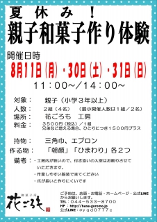 こんにちは!女将です!!来月和菓子作り体験を再開します。今回は夏休み企画「親子和菓子作り体験」です。定期的な開催は今のところございませんが、少しずつ開催を増やしていけたらなと考えています。夏の思い...